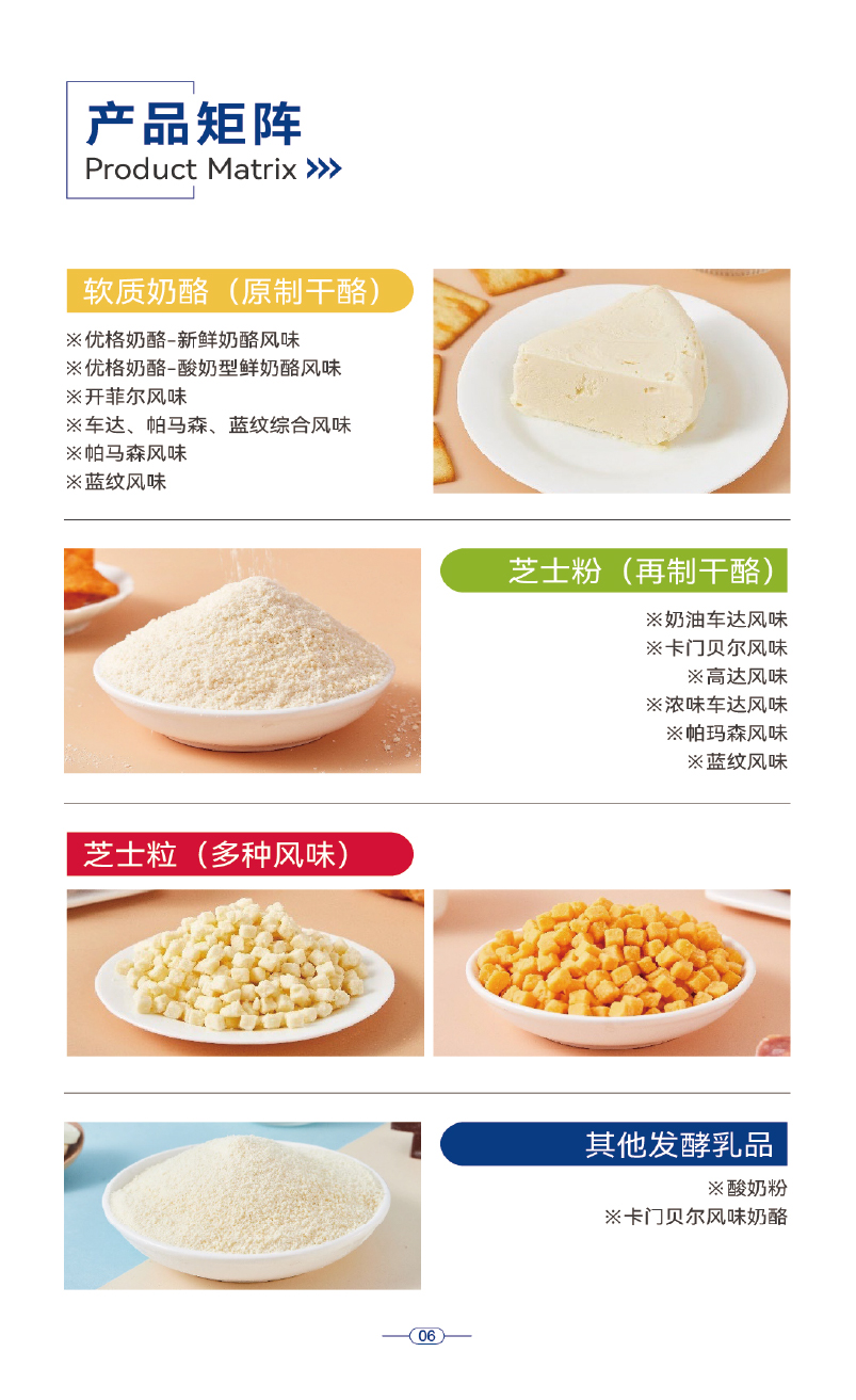 从电商爆款到餐饮新宠,奶酪风味的市场热度持续攀升,已然成为食品的必争的风味赛道!依托高适配的芝士核心原料,精准契合市场消费需求,打造特色芝士风味单品,方能抢先抢占品类风口!